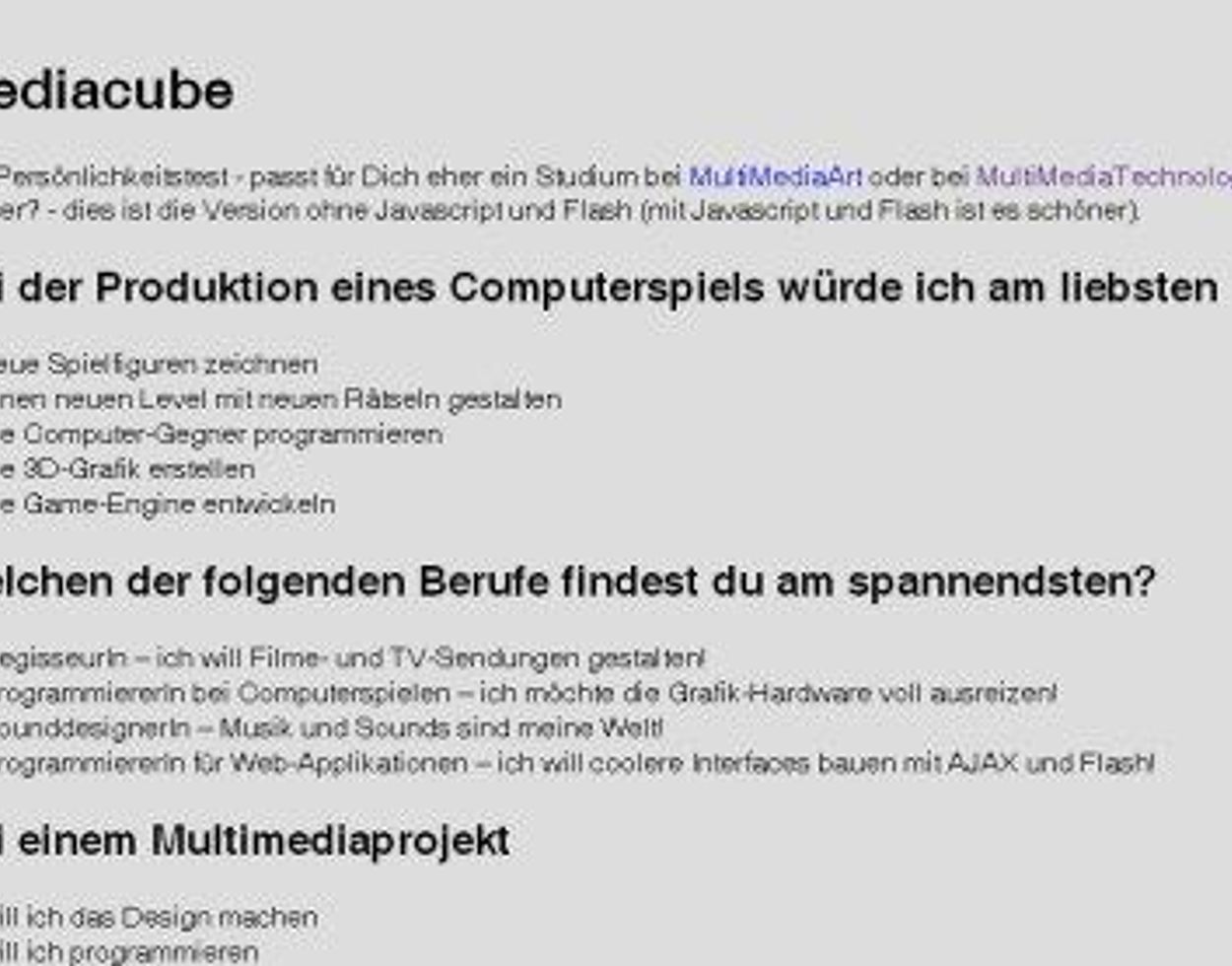 Für UserInnen ohne Javascript und Flash-Plugin wird der Test mit einem einfachen Web-Formular dargestellt. Der Inhalt ist also gleich, nur die Darstellung ist wesentlich einfacher.