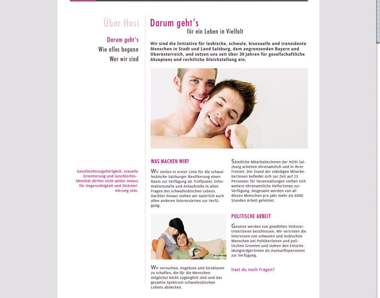 Die HOSI Salzburg (homosexuelle Initiative Salzburg) benötigte eine inhaltliche und grafische Neugestaltung ihrer Website und entschied sich dieses Projekt im Herbst 2010 an Studenten zu vergeben.