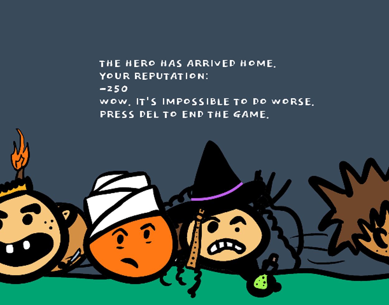 Sammle Items, interagiere mit Charakteren und triff schlaue Entscheidungen, um dem Helden auf seinem Heimweg zu helfen - und zerstöre seine Reputation dabei nicht!