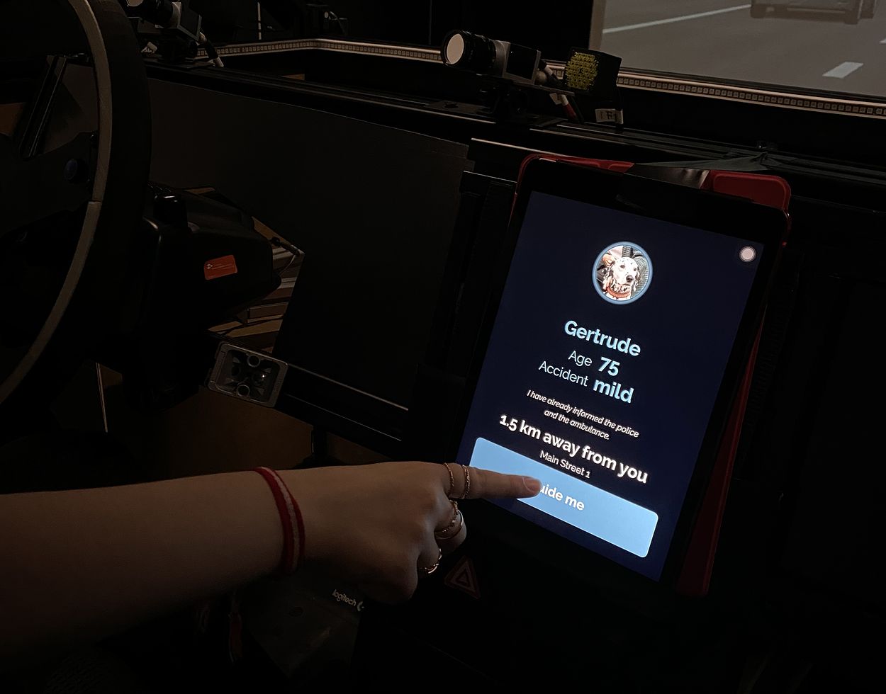 Conducting a user study on a car simulator, we found positive reactions from eight users towards AutoMate, leading to a more empathic approach from them to the victim. We investigated how AutoMate can help to reduce the bystander effect in car accidents. AutoMate is a useful tool as an integrated add-on in existing car systems.
