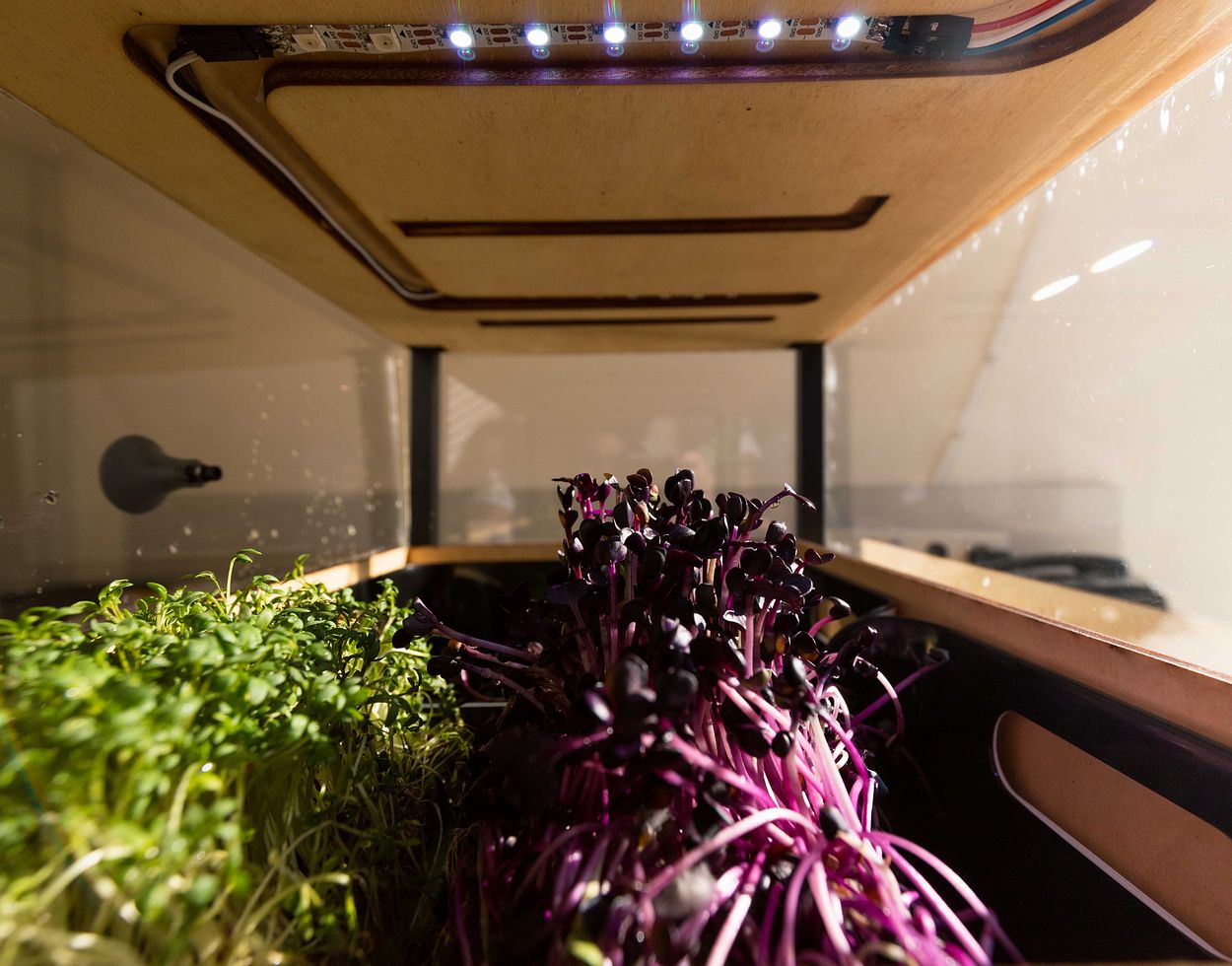 modul.Grow is the idea of a modular garden for growing mushrooms, sprouts, spices and herbs in the comfort of your home. The modul.Grow allows for fungi and small green plants to grow year-round and ensures independent variables (ie., temperature, humidity and light intensity) are controllable through the press of a few buttons on the dedicated app.