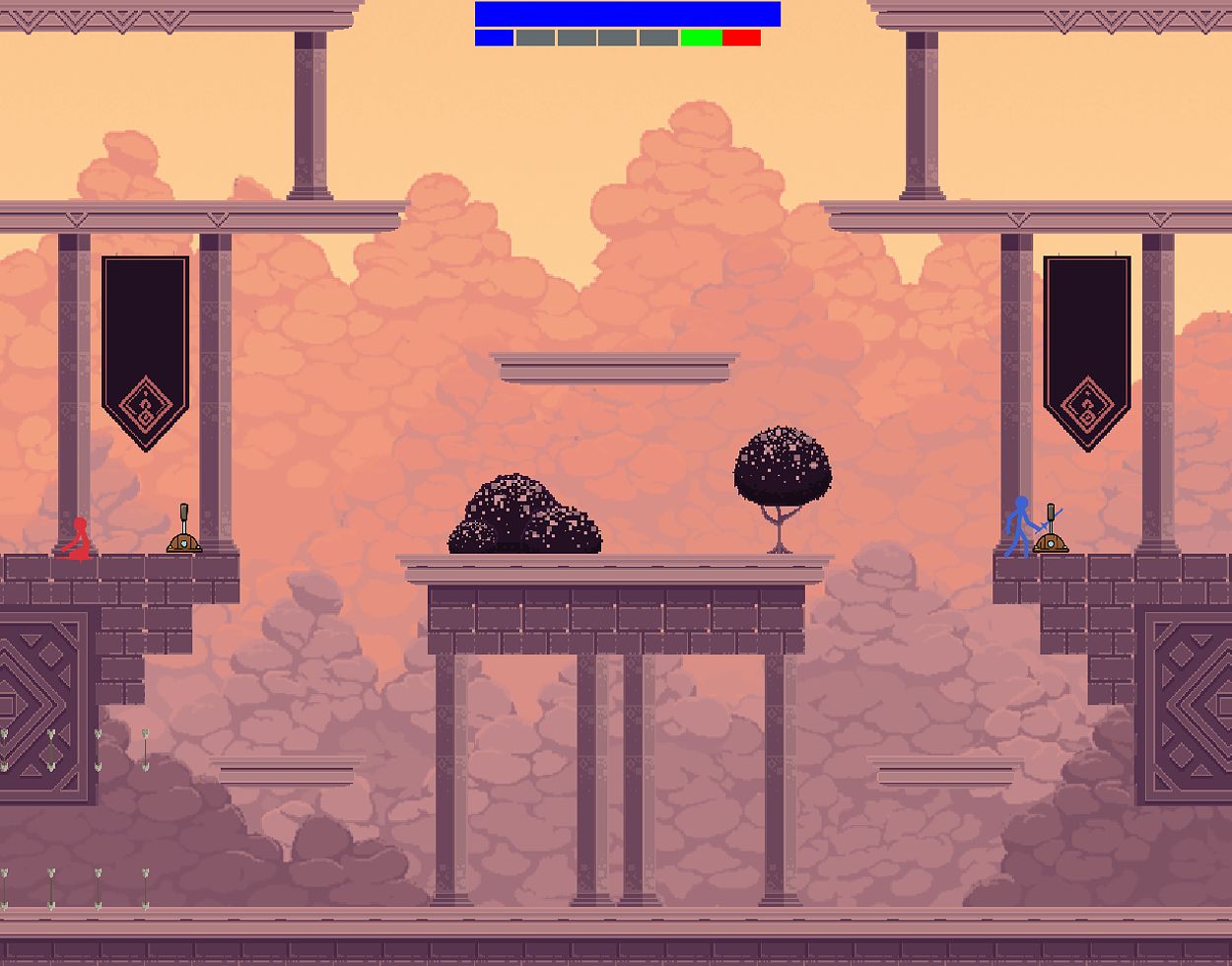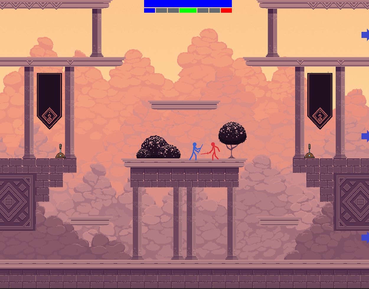 Foe's End is a 2D PvP Platformer inspired by the game franchise "Nidhogg". Play as either blue or red in a tug of war on who reaches his opponent's endzone first.