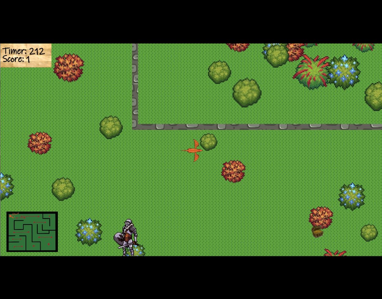 In the first minigame, a top-down run and hide adventure, the player controls and navigates the dragon through a maze to find treasures. The main objective is to avoid detection by knights out hunting dragons. Players must use their wits to hide in shrubbery whilst searching for hidden treasure chests scattered throughout the level. This part of the game emphasizes strategic thinking and shows that brutality and displays of strength aren't the only way to a dragon treasure.