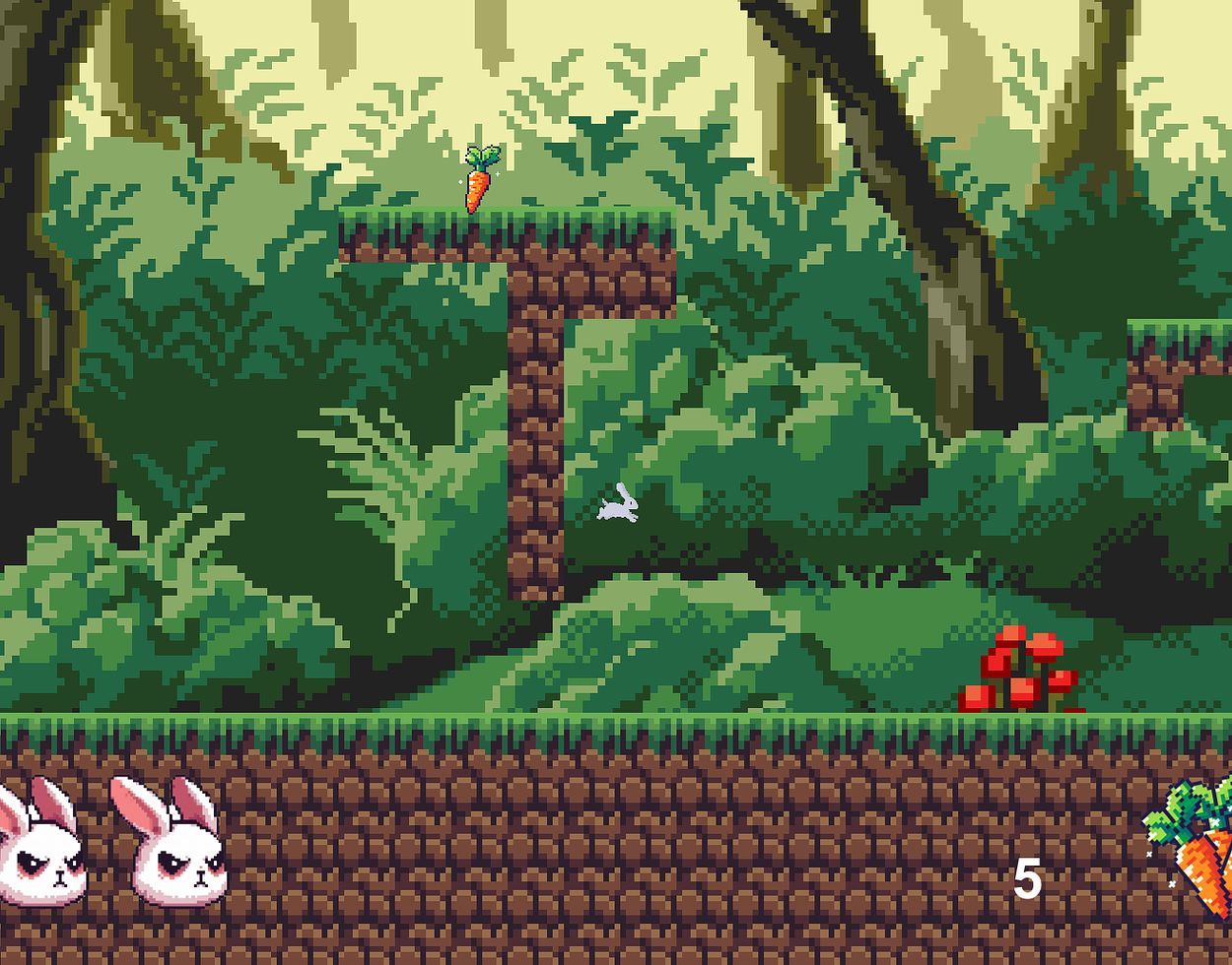 Carrot And Slick draws its inspiration from the "metroidvania" genre, which is known for its combination of Jump-And-Run mechanics with the progressive unlocking of abilities, thus enabling a more engaging exploration of the game world. The game also has heavy influences from Super Mario, emphasizing platforming skills over enemy combat. By blending these influences, Carrot And Slick attempts to create a challenging platformer.