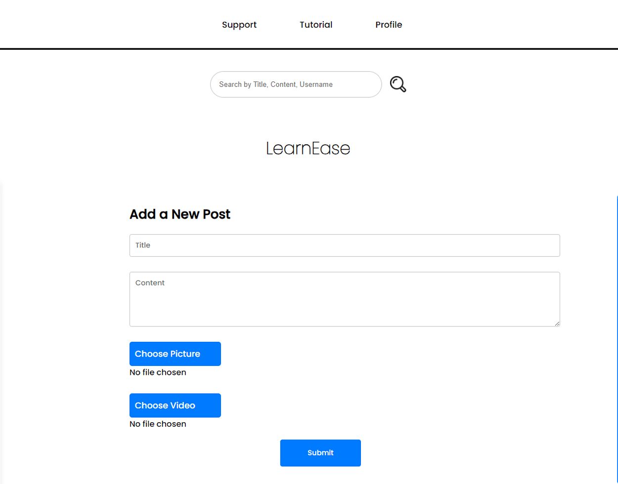 The Support page on LearnEase is a dedicated section where users can find help and support for any issues they might encounter while using the platform. The support system is designed to be accessible and responsive, ensuring that users can get the assistance they need in a timely manner.One of the key features of the Support page is the live chat functionality. This feature allows users to communicate in real-time with support agents who can provide immediate assistance. Whether users have questions about registration, need help navigating the platform, or encounter technical issues, the live chat ensures they receive prompt and effective support. This real-time interaction enhances user satisfaction and minimizes downtime, enabling users to continue their learning activities without significant interruptions.