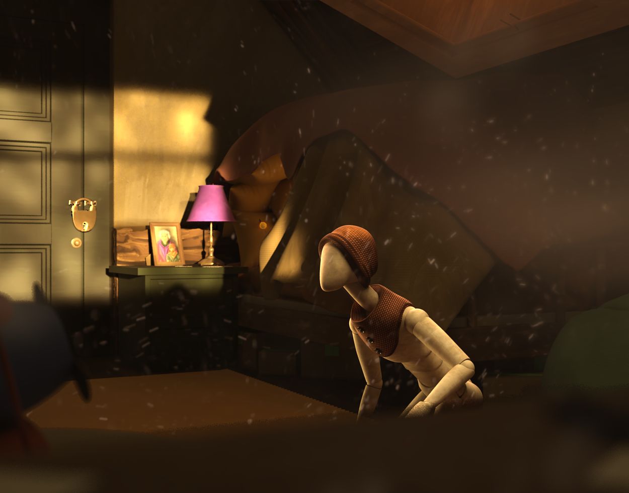 The animation follows an animated puppet through a seemingly abandoned house. As the character delves deeper into the home, they notice more of the weirdness of the environment as well as slowly realising that its their old childhood home. The animation ends with the character having to flee from its environment, and in an effort to hide, restarting the loop that got them there.