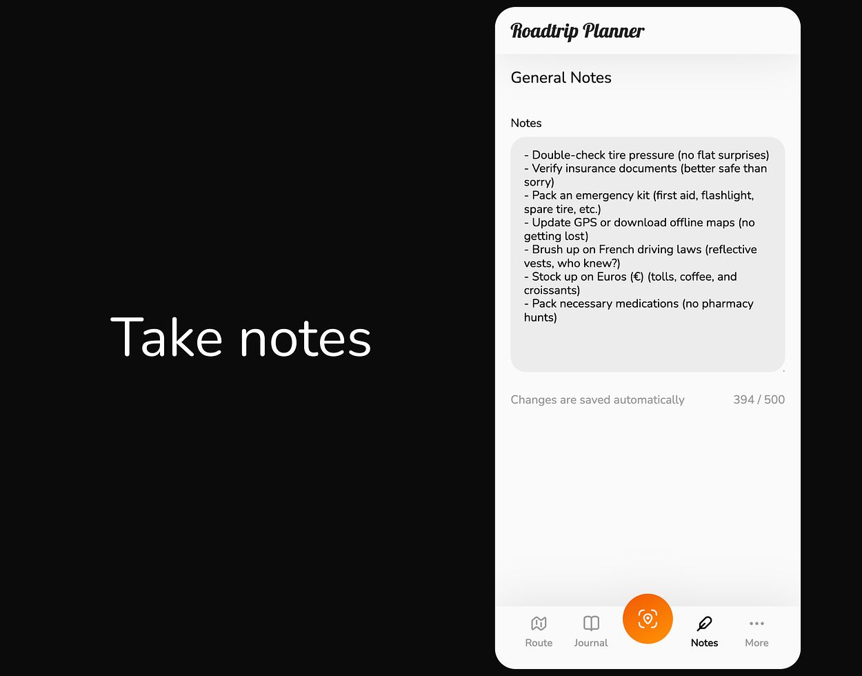 Capture your memories in the digital journal and revisit them whenever you want. Keep track of your experiences and relive your road trips.