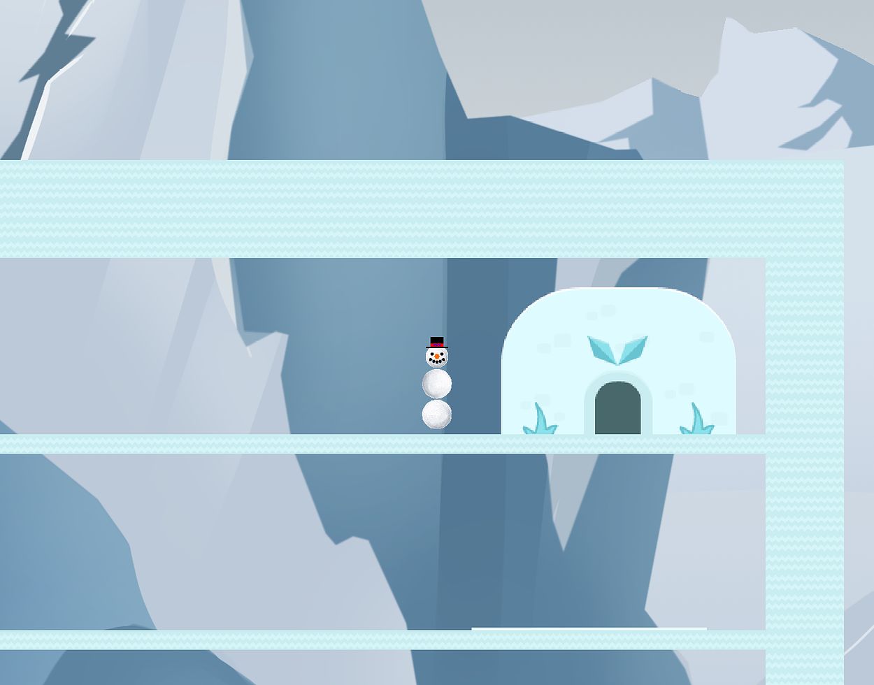 The aim is to reach the snowman's house. A little tip: The aim is not to collect as much snow as possible and reach the finish line, but to maintain a good balance. Ps if the snowman is too big, he won't fit in the house