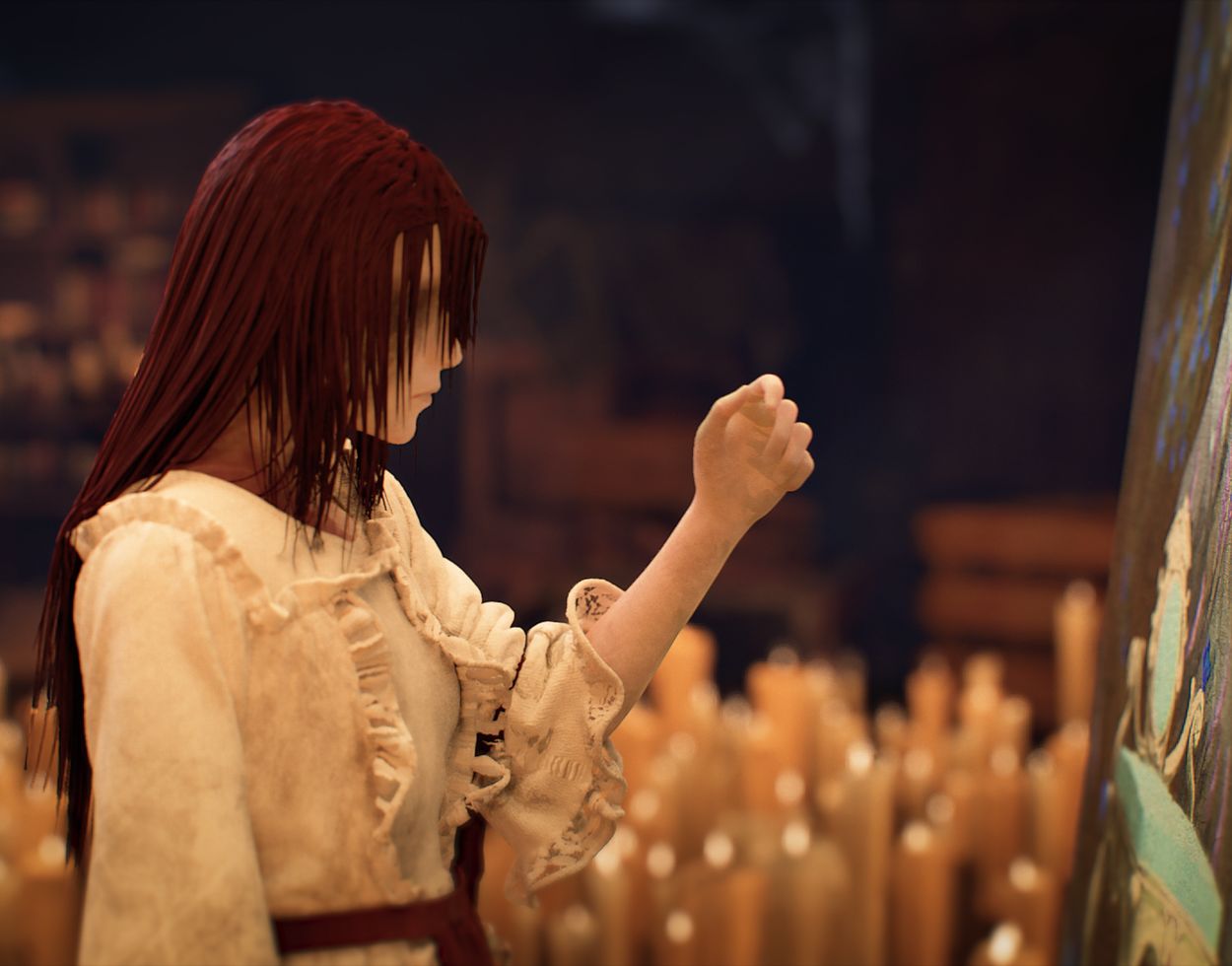 character’s clothing was designed in Marvelous Designer, providing realistic fabric movement