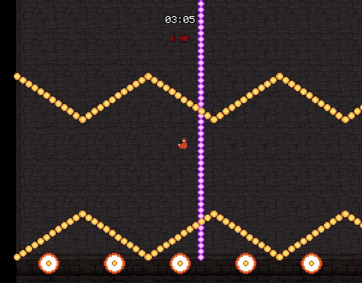 QUINT is a 2D top-down pixel bullet-hell bossfight game focused entirely on dodging. The boss, Obelith, progresses through four phases, each featuring a variety of arena-wide projectile patterns as well as spontaneous aimed attacks designed to catch you off guard and disrupt your rhythm as you dance and roll around the arena. Will you be able to stay calm and survive Obelith’s onslaught?