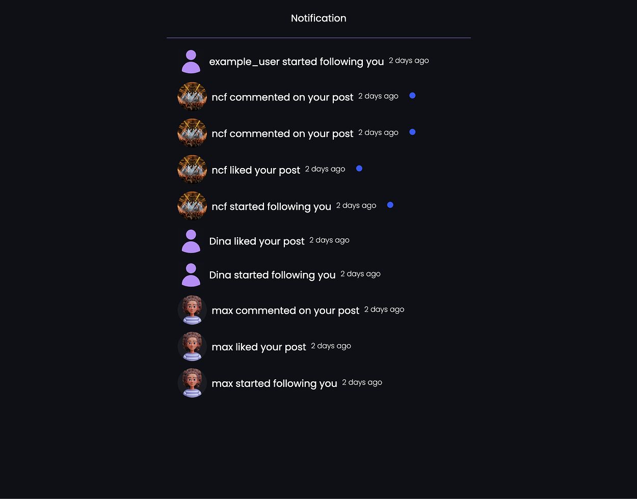 Notifications: Stay updated on likes, comments, and followers through the notification system.