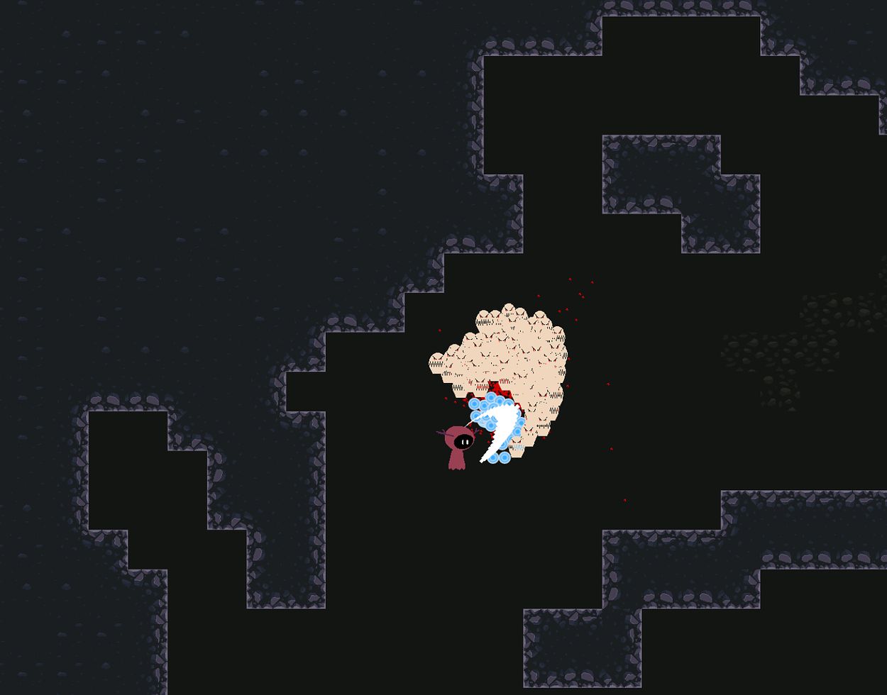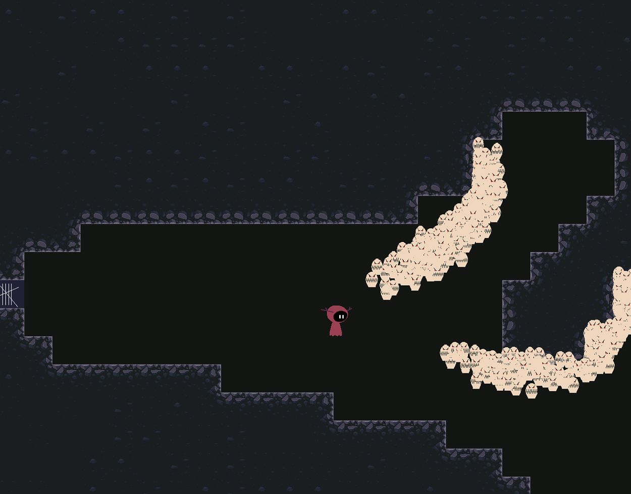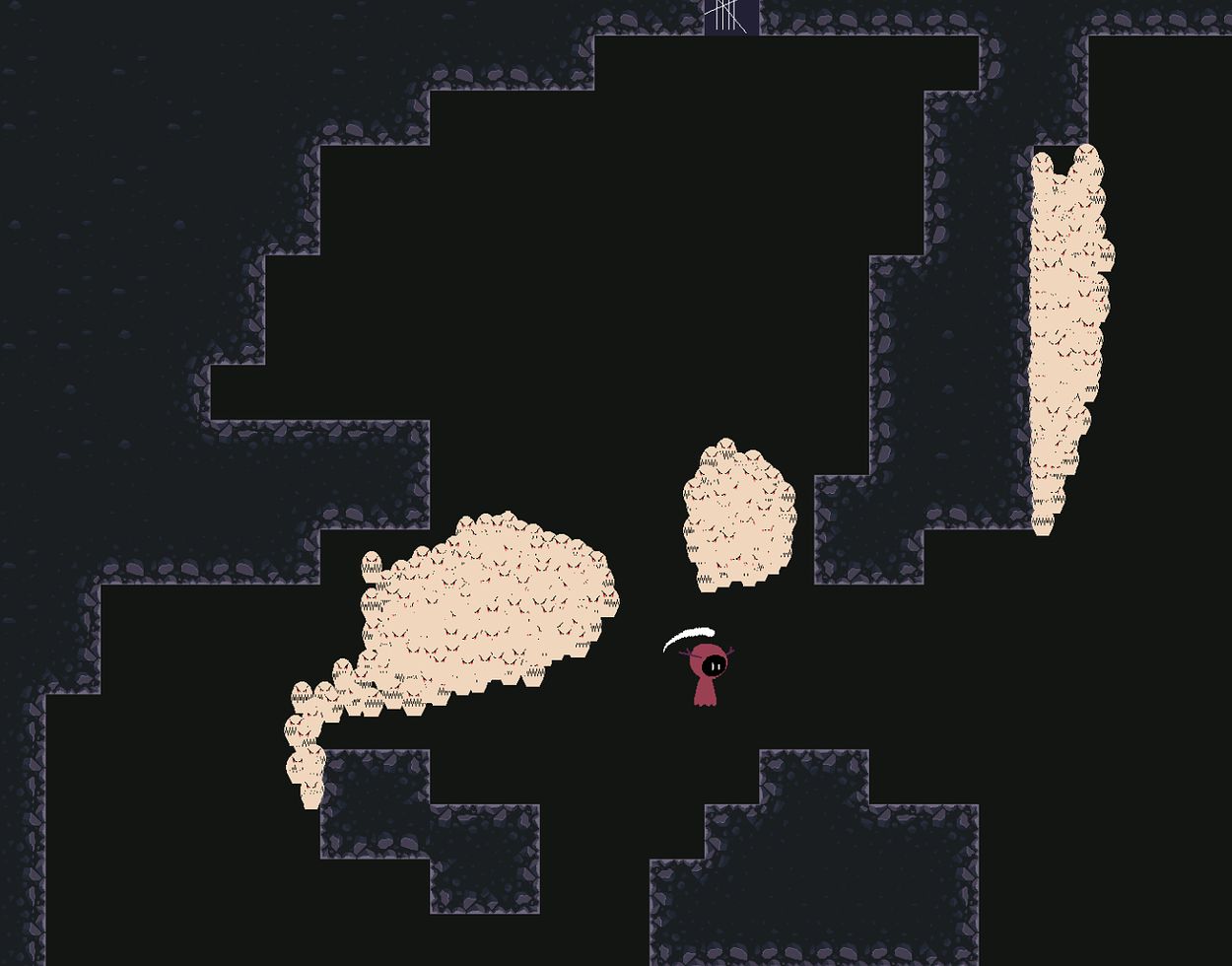 Armed with their trusty scythe, players descend into a procedurally generated dungeon swarming with otherworldly creatures. The player progresses through the dungeon one room at a time. To unlock the path forward and move to the next room, all souls in the current area must be harvested. Players carve their way through hordes of enemies, thus gathering the quota of souls required to help the Devil out of his jam. Each descent into the dungeons has the player exploring a new, sinister environment filled with an atmosphere thick with unease.