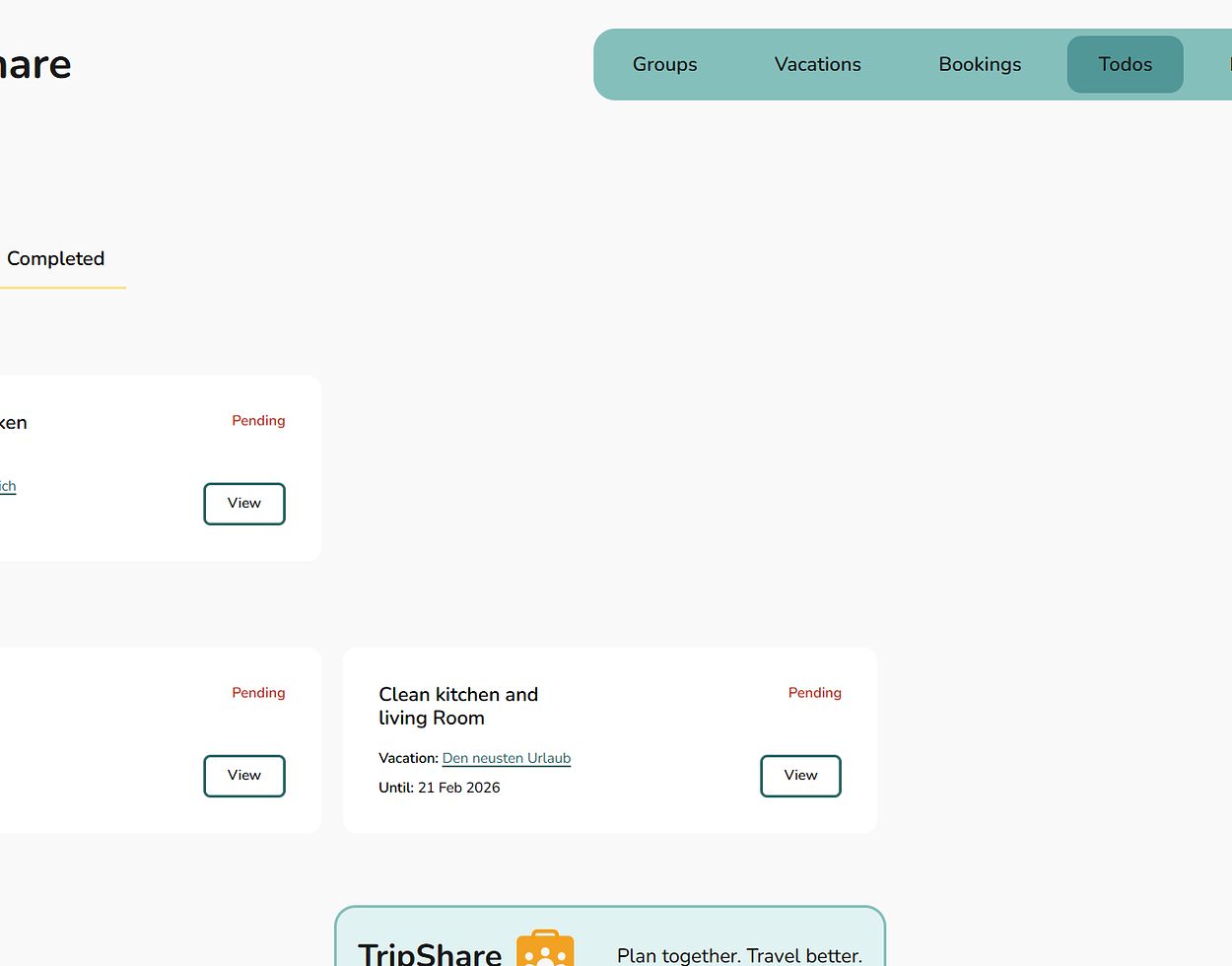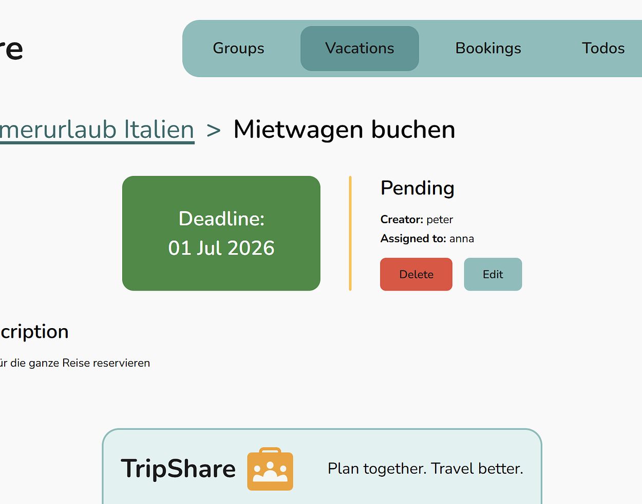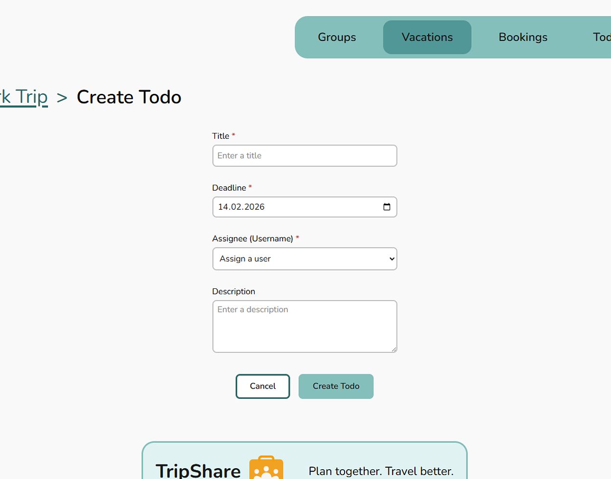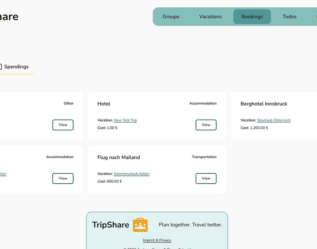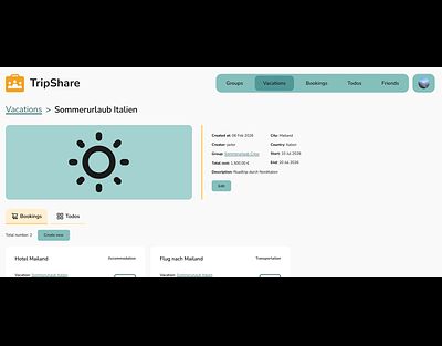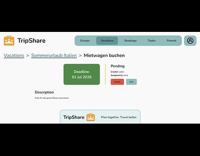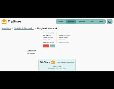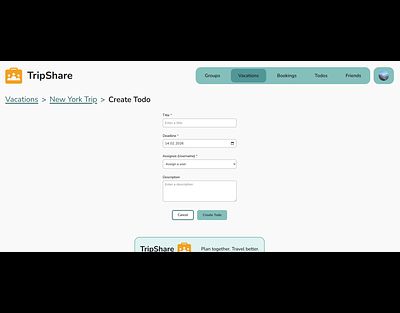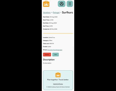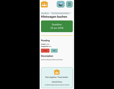 Plan vacations with different groups, keep track of bookings, share expenses fairly, and manage todos.