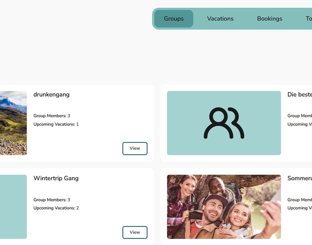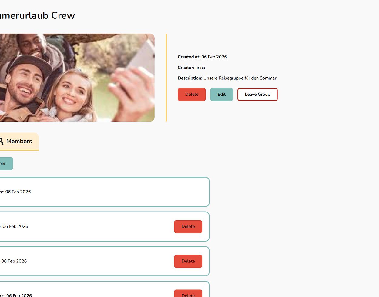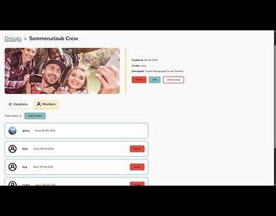 On the group detail page, you can manage members at any time and see upcoming vacations for that group.