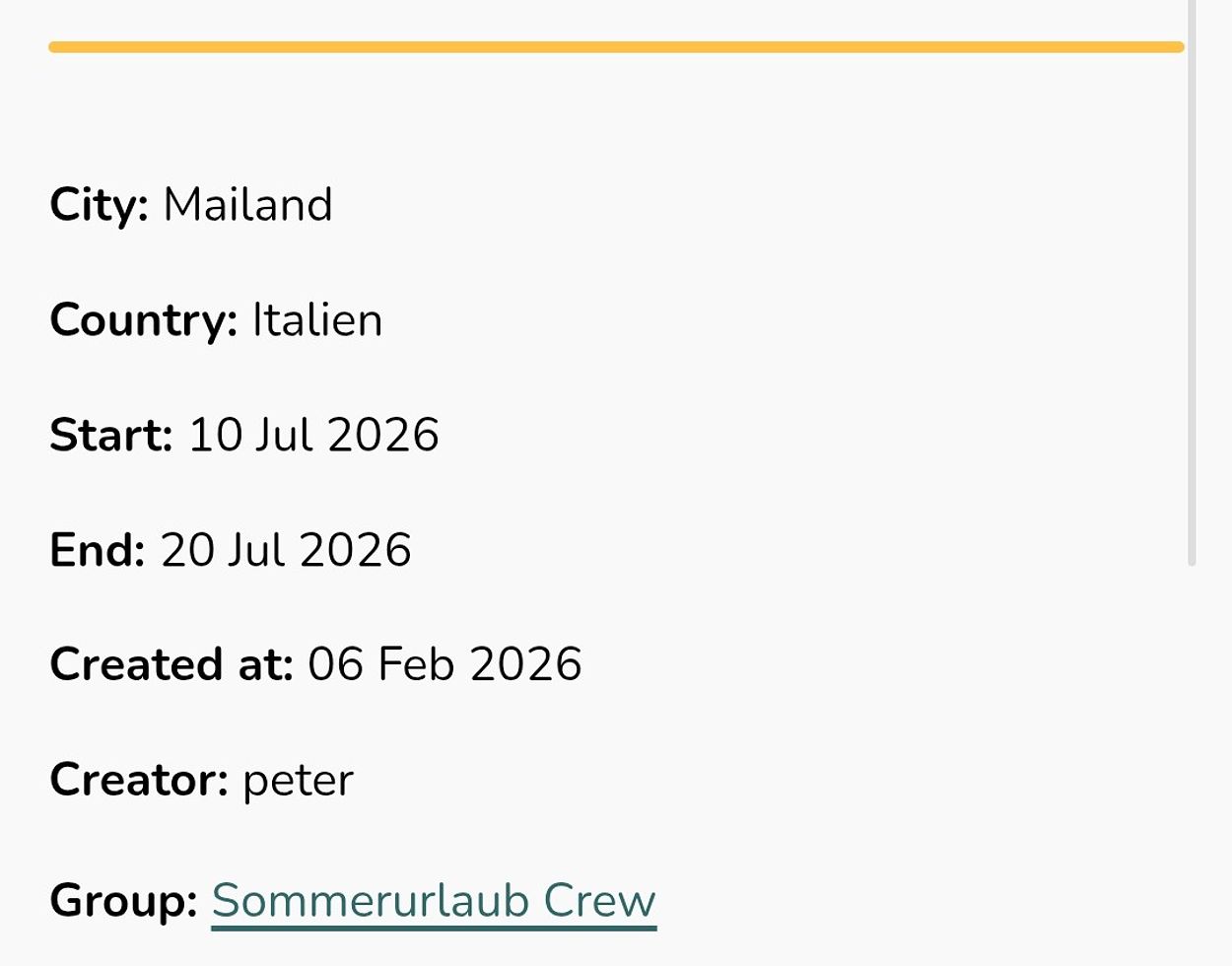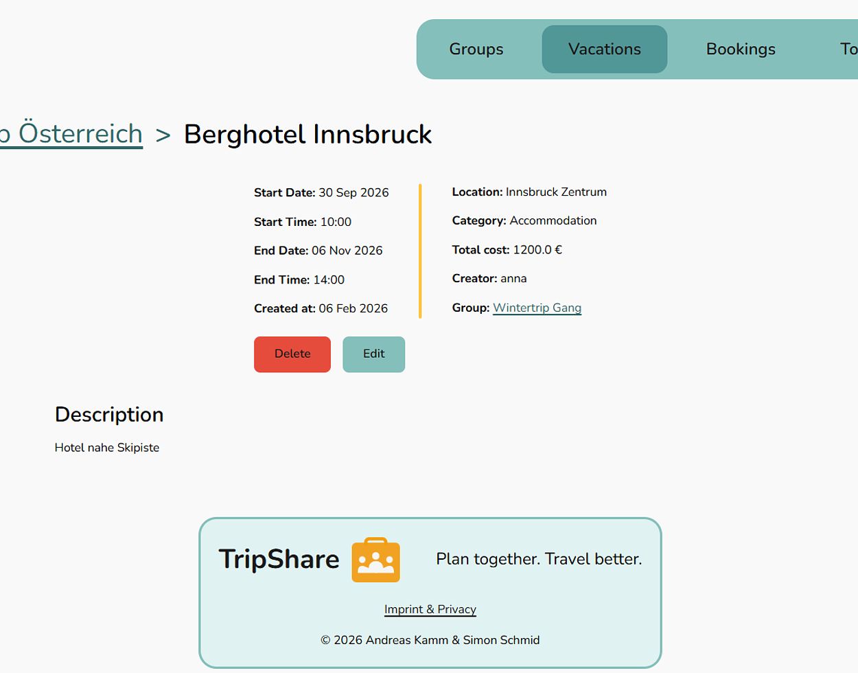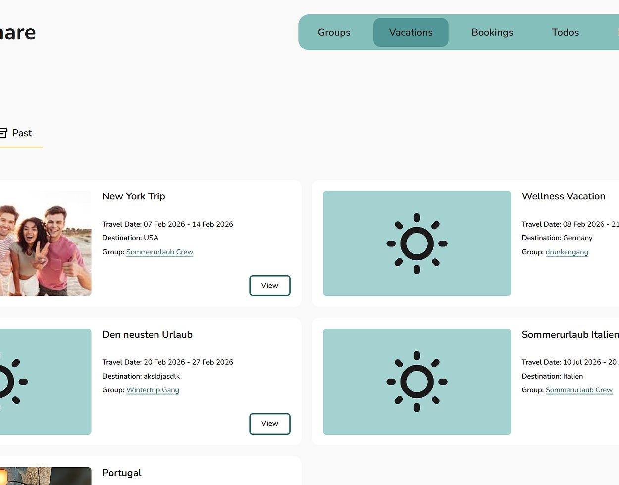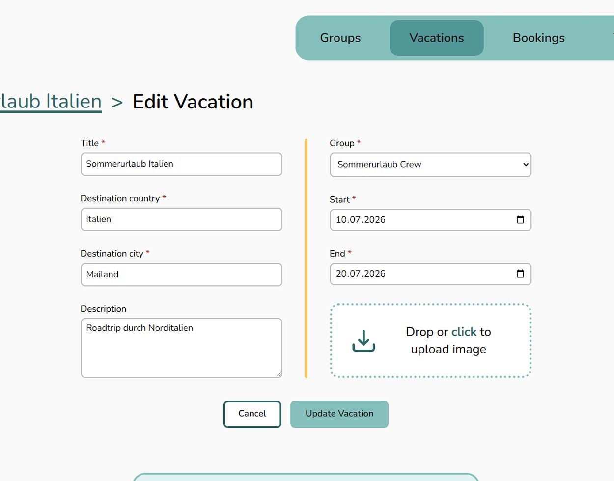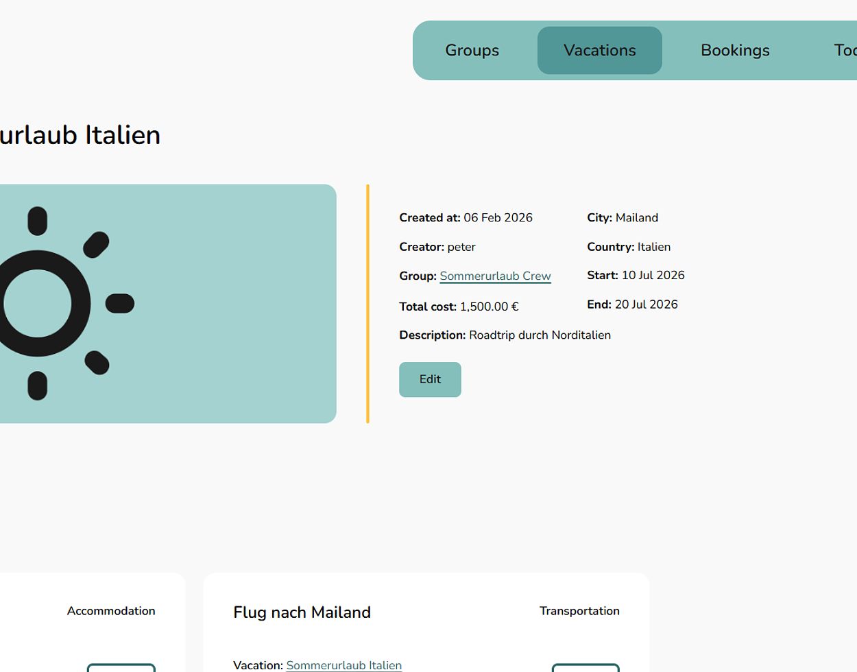 Each vacation has its own detail page with a clear and structured overview.