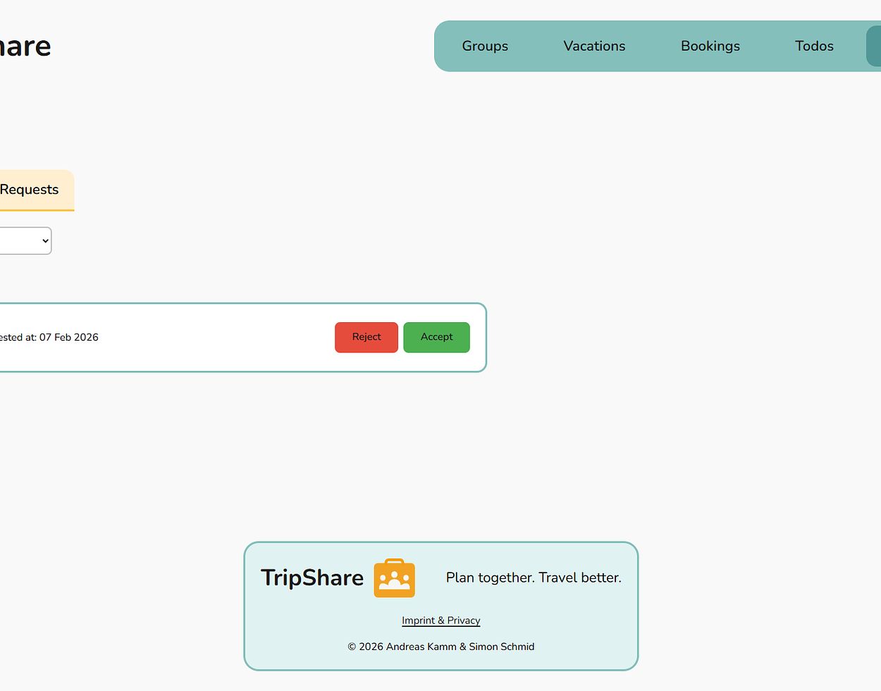 TripShare is a team-oriented vacation planning web app that makes organizing trips with friends simple.