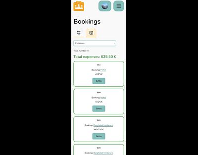 On the Bookings page, you’ll find a complete overview of all your bookings and a spending section where you can settle debts and expenses.