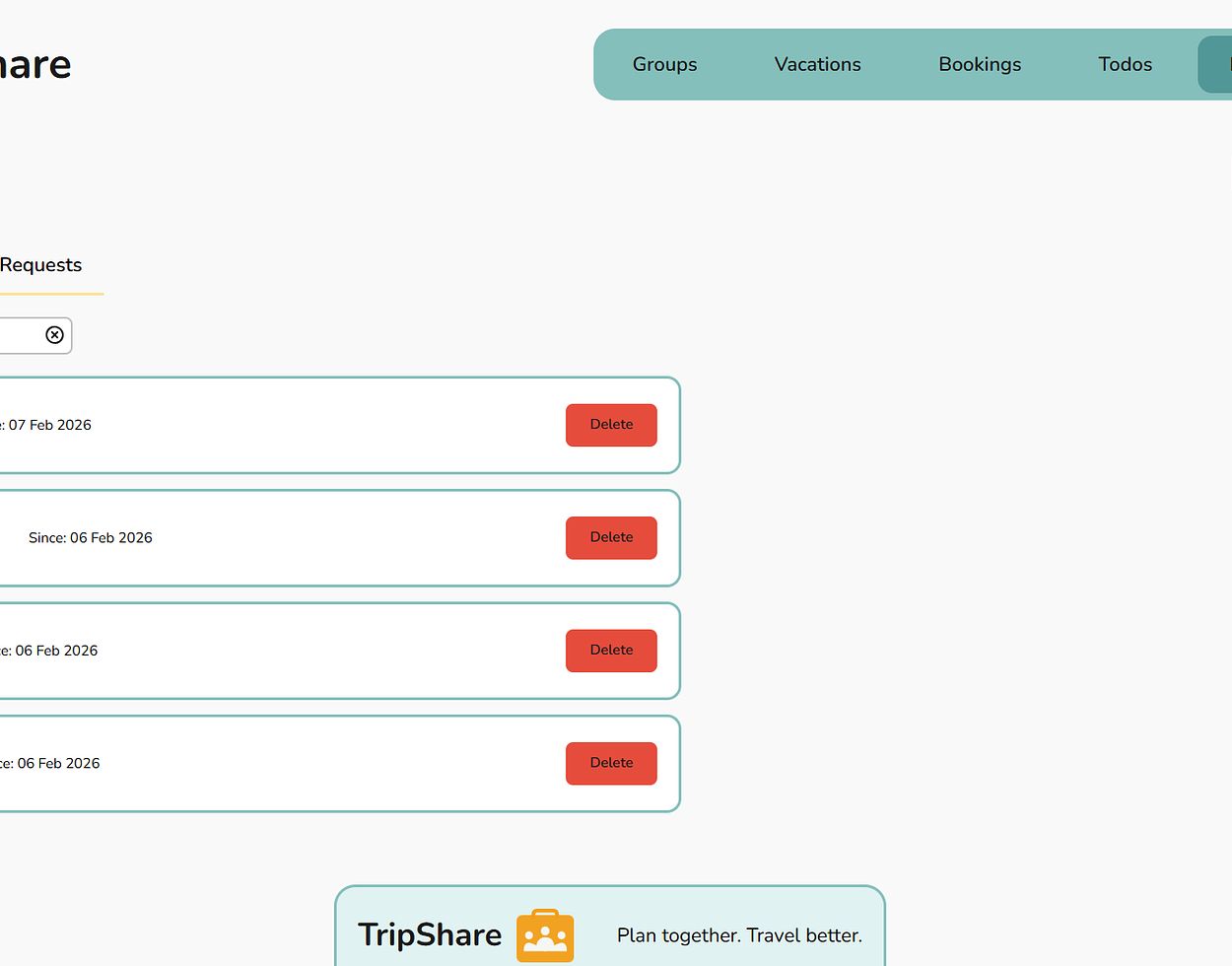 Tripshare makes managing friendships easy.